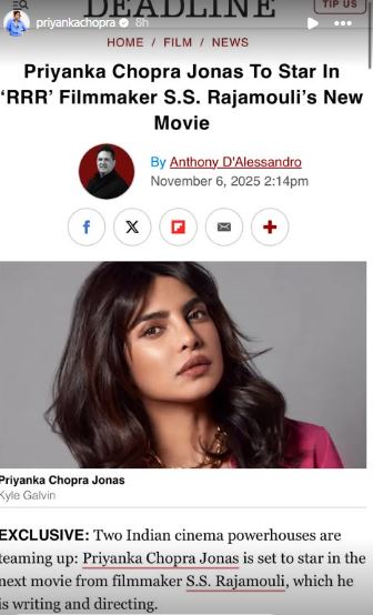 Mumbai (Maharashtra) [India], November 8 (ANI): Actor Priyanka Chopra Jonas has officially confirmed her casting in SS Rajamouli’s upcoming film, tentatively titled ‘Globetrotter’, which also features South star Mahesh Babu.
