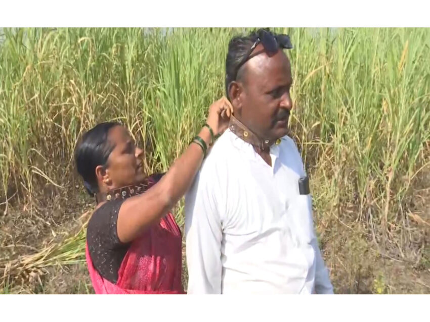 Pune (Maharashtra) [India], November 22 (ANI): Residents of the Pimparkhed village in Pune, Maharashtra, wear spiked collars while working in the fields to protect themselves from fatal leopard attacks.
