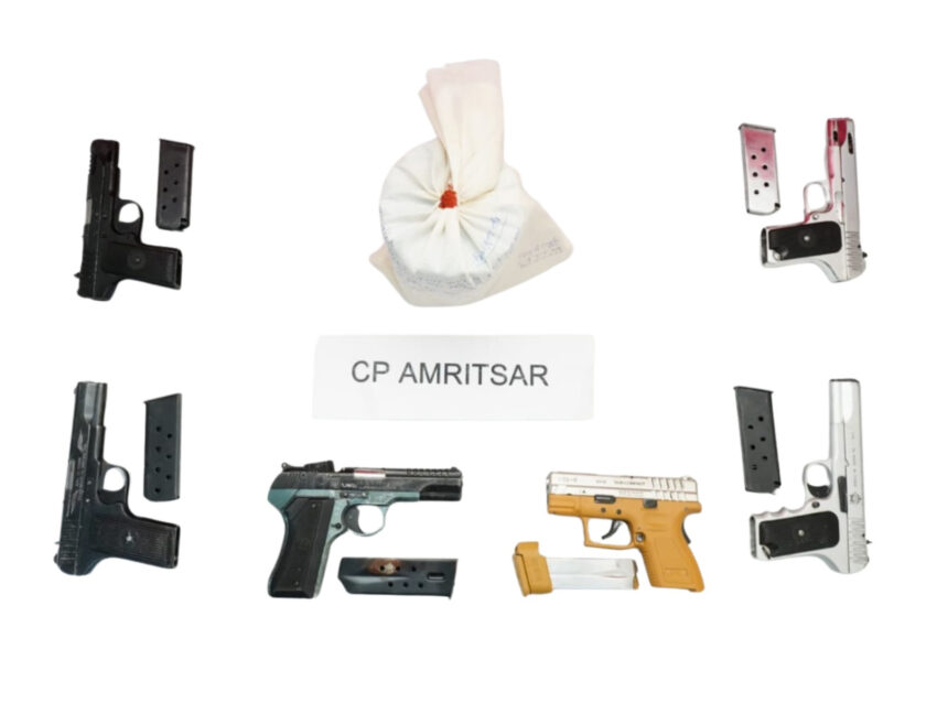 In a post on X, the official account of the Director General of Police shared, “Acting on intelligence inputs, Amritsar Commissionerate Police dismantles a Pakistan-linked arms and narco network and apprehends five persons and recover six sophisticated pistols (five .30 bore & one Glock 9mm) along with 1 Kg 10 gm Heroin.”