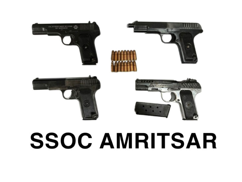 In a post on X, DGP Punjab Police said, “In a major breakthrough, State Special Operation Cell (#SSOC), Amritsar busts a cross-border smuggling network and apprehends four operatives: Jugraj Singh @ Chiri, Kulbir Singh @ Nannu @ Kalu, Arshdeep Singh and Nachattar Singh, all residents of #TarnTaran & recovers four sophisticated pistols of 30 bore with live ammunition.”