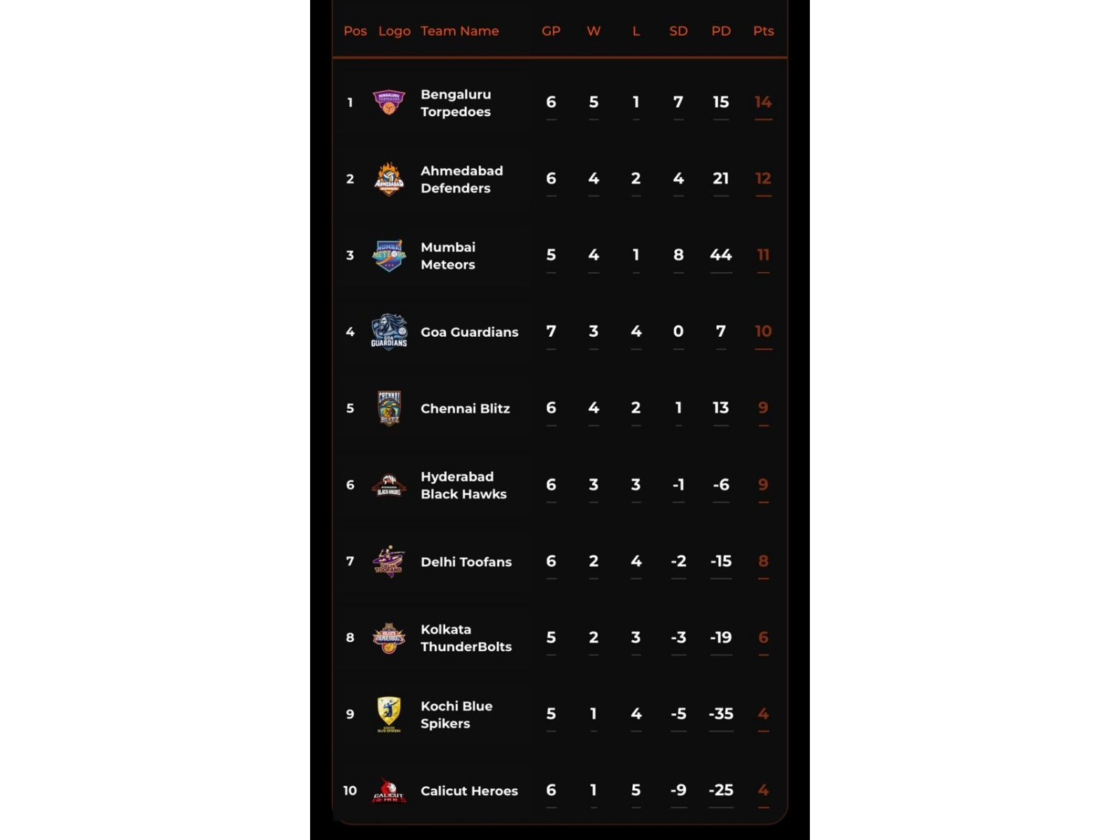 In the decisive fifth set, both teams traded blows early before Goa’s Aravindan executed a clever setter dump and Prince continued his heroics at the net. Anu James fought hard for the Toofans, but Chirag Yadav’s powerful super point spike sealed a famous 3-2 victory for the Guardians.