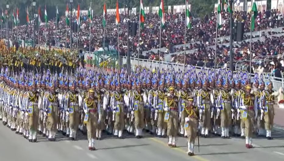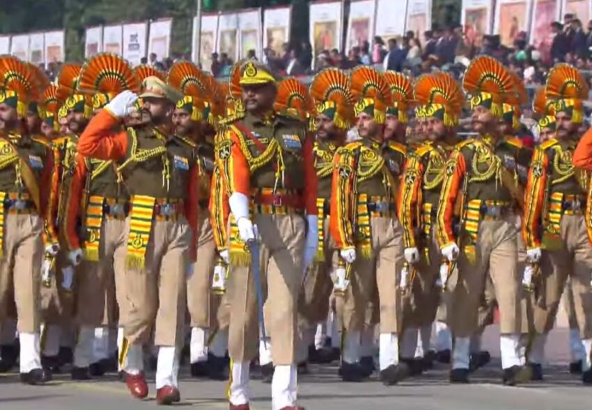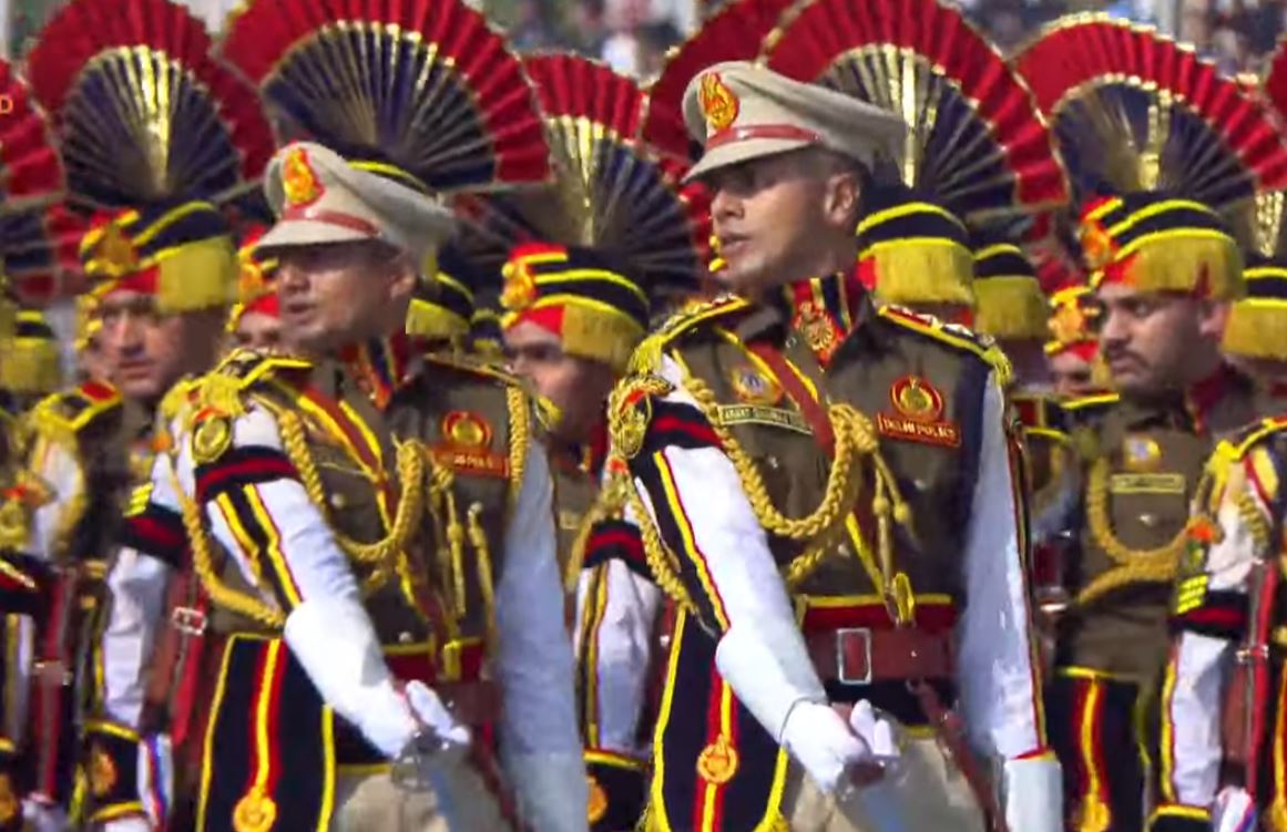 Following them was the Delhi Police Marching Contingent, a 17-time winner of the Best Marching Contingent award. The contingent was led by Assistant Commissioner of Police, Anant Dhanraj Singh, IPS. The Red Safa-clad jawans of the Delhi Police marching contingent, consisting of one ACP, 03 inspectors, 44 Head Constables, and 100 Constables, includes only those whose height exceeds six feet. This elite group of towering individuals reflects the pride and grandeur of the force.