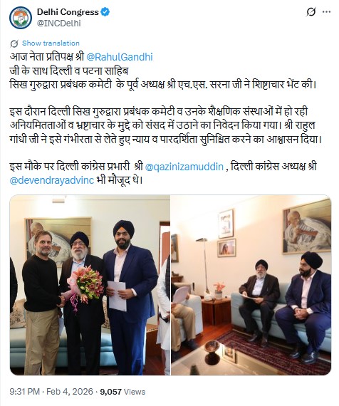 “During the meeting, a request was made to raise in Parliament the issues of irregularities and corruption currently taking place in the Delhi Sikh Gurdwara Management Committee and its educational institutions. Shri Rahul Gandhi ji took the matter seriously and assured that justice and transparency would be ensured,” the post added.