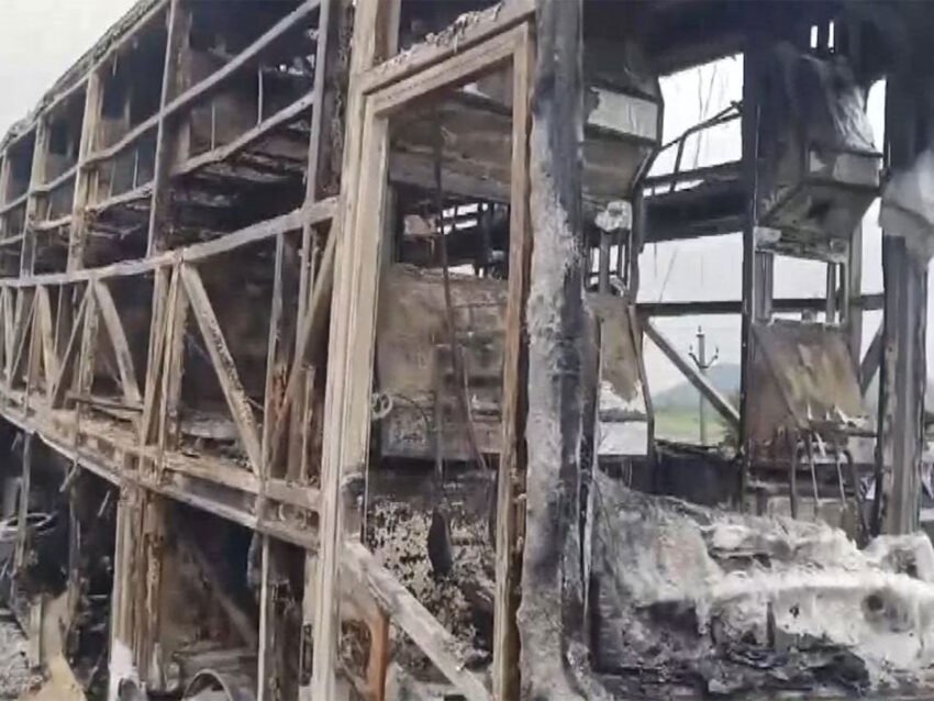 A private bus carrying 41 passengers in Andhra Pradesh’s Kurnool caught fire, killing at least 20 passengers after colliding with a bike that got stuck under the bus, officials confirmed.