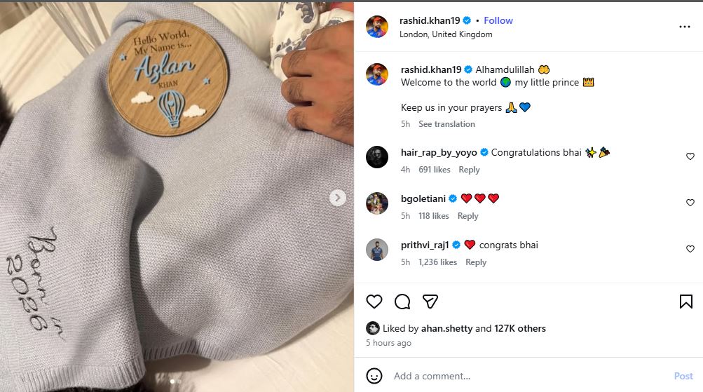 On Saturday, Rashid took to Instagram and shared the good news with his fans.