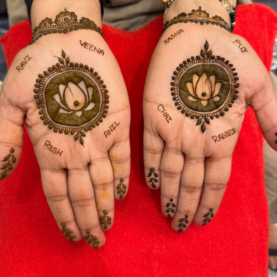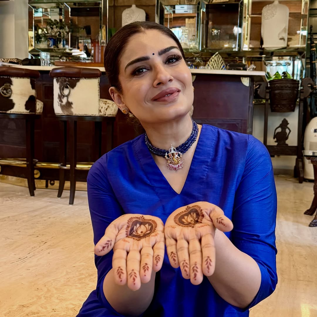 Raveena also participated in the traditional mehendi ritual and chose to make it extra special this year by paying homage to her loved ones. She got the names of her parents, husband and children beautifully inscribed in her henna design, giving her Karwa Chauth celebrations an emotional and personal touch.