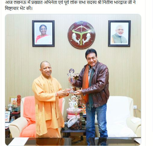 Chief Minister Yogi Adityanath said on X, “Today, in Lucknow, the renowned actor and former Member of Parliament, Shri Nitish Bhardwaj Ji, paid a courtesy visit.”