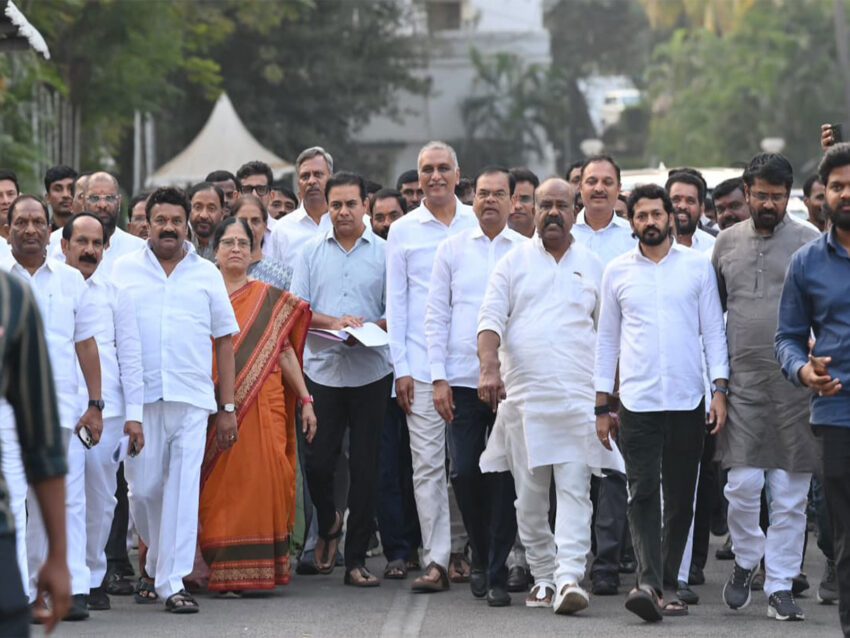 KTR, along with other BRS leaders and party workers, met Telangana Governor Jishnu Dev Varma and submitted a memorandum on the matter.