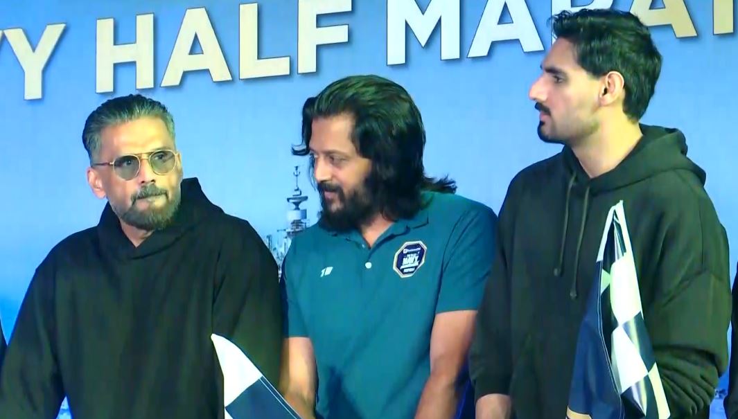 Mumbai (Maharashtra) [India], November 23 (ANI): Actors Riteish Deshmukh and Suniel Shetty, along with the Western Naval Command’s Flag Officer Commanding-in-Chief, Krishna Swaminathan, flagged off the 10 km segment of the WNC Half Marathon 2025 on Sunday.