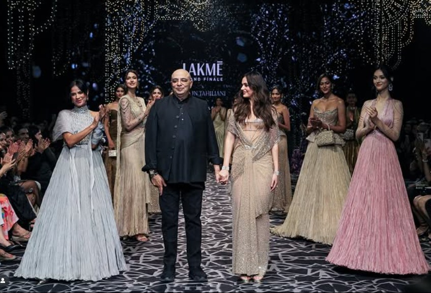 The official Instagram handle posted picture from the show with a brief description in the caption, “House Of Lakme Grand Finale X Tarun Tahiliani present ‘Bejewelled’ at Lakme Fashion Week In Partnership With FDCI. For Tarun Tahiliani, jewels are metaphors for light, transformation, and the timeless glamour of our culture. To be bejeweled in India is to be adorned not only with gems, but with memory, craft, and the textures of the land itself.”