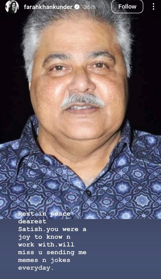 Farah paid tribute to the actor, saying, “Rest in peace. Dearest Satish, you were a joy to know and work with. Will miss u sending me memes and jokes every day.”
