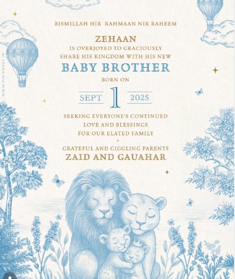 “Zehaan is overjoyed to graciously share his kingdom with his new baby brother born on September 1, 2025. Seeking everyone’s continued love and blessings for our elated family. Grateful and giggling parents Zaid and Gauahar,” their note read.