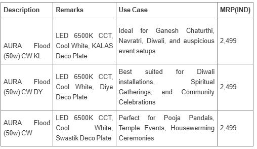 From Diwali to Navratri, from temple courtyards to community fairs, the Phillips Aura Floodlight is tailored for India’s unique cultural landscape. It addresses the long-standing challenge faced by event organizers and contractors who rely on makeshift combinations of plain floodlights and separate decorative elements, offering instead a single, installation-ready, professional-grade solution. The product is available in Cool White (6500K) and Neutral White (4000K) color temperatures, with an MRP of IND 2,499/- across all variants.