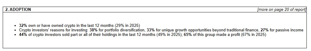 – Crypto owners: defined as those who own crypto at the time of the survey.