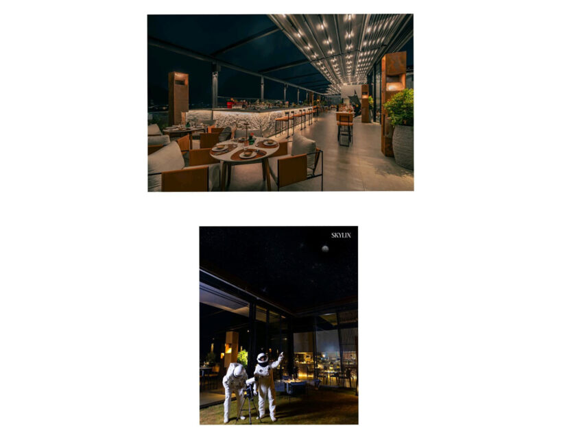 The heart of Skylix comes alive on the iconic Observatory Deck. Under a canopy of stars glowing with warm amber torchlight and gentle moonlight guests find themselves immersed in an atmosphere that feels dreamlike yet inviting. Adding to the venue’s charm is the signature theatrical descent of astronauts, a moment of whimsy that has become symbolic of Skylix’s spirit. Guests can begin the evening with the Sunset Toast Ritual at the Vantage Point, drift through golden hour aboard the playful Champagne Boat on Wheels, or unwind with a serene stargazing experience under the open sky.