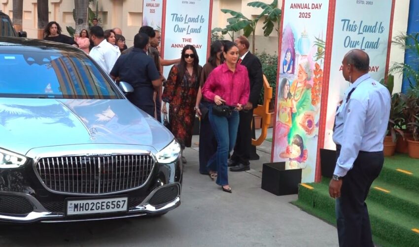 Kareena Kapoor Khan was spotted attending the function to support her sons. The actor kept it casual yet stylish, wearing a dark pink shirt paired with blue denim as she arrived at the venue. She was accompanied by her sister Karisma Kapoor, who looked equally stunning.
