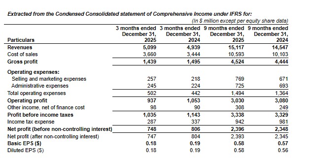 a) The above information is extracted from the audited condensed consolidated Balance sheet and Statement of Comprehensive Income for the quarter and nine months ended December 31, 2025, which have been taken on record at the Board meeting held on January 14, 2026.