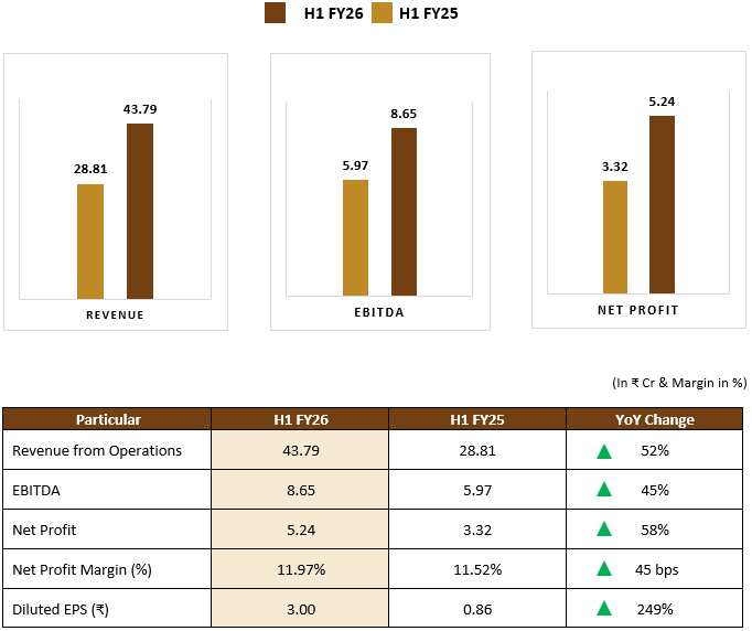 In FY25, the company achieved a Revenue of ₹7,924.32 lakhs, EBITDA of ₹2,327.12 lakhs with an EBITDA Margin of 29.09% and PAT of ₹1,515.14 lakhs with a PAT Margin of 18.94%.