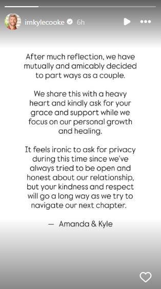 “We share this with a heavy heart and kindly ask for your grace and support while we focus on our personal growth and healing. It feels ironic to ask for privacy during this time since we’ve always tried to be open and honest about our relationship, but your kindness and respect will go a long way as we try to navigate our next chapter.”