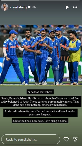 Actor Suniel Shetty, an ardent cricket fan, took to Instagram to express his excitement.