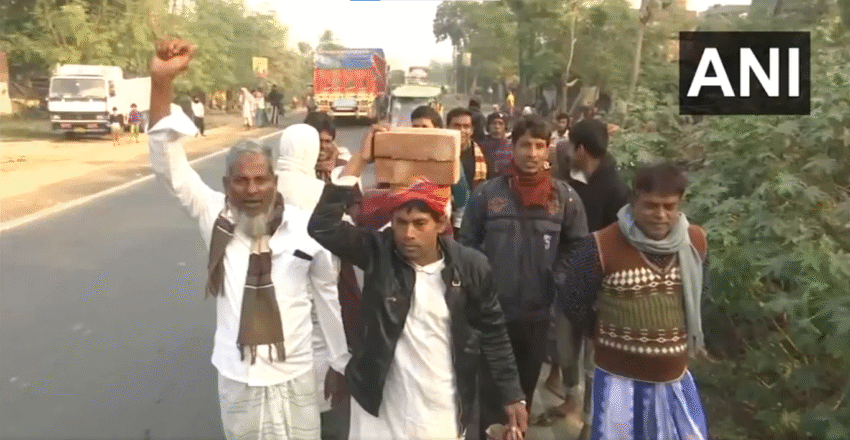 One local resident, Md Safiqul Islam of Uttar Barasat, was seen carrying bricks on his head as part of his contribution to the proposed structure.