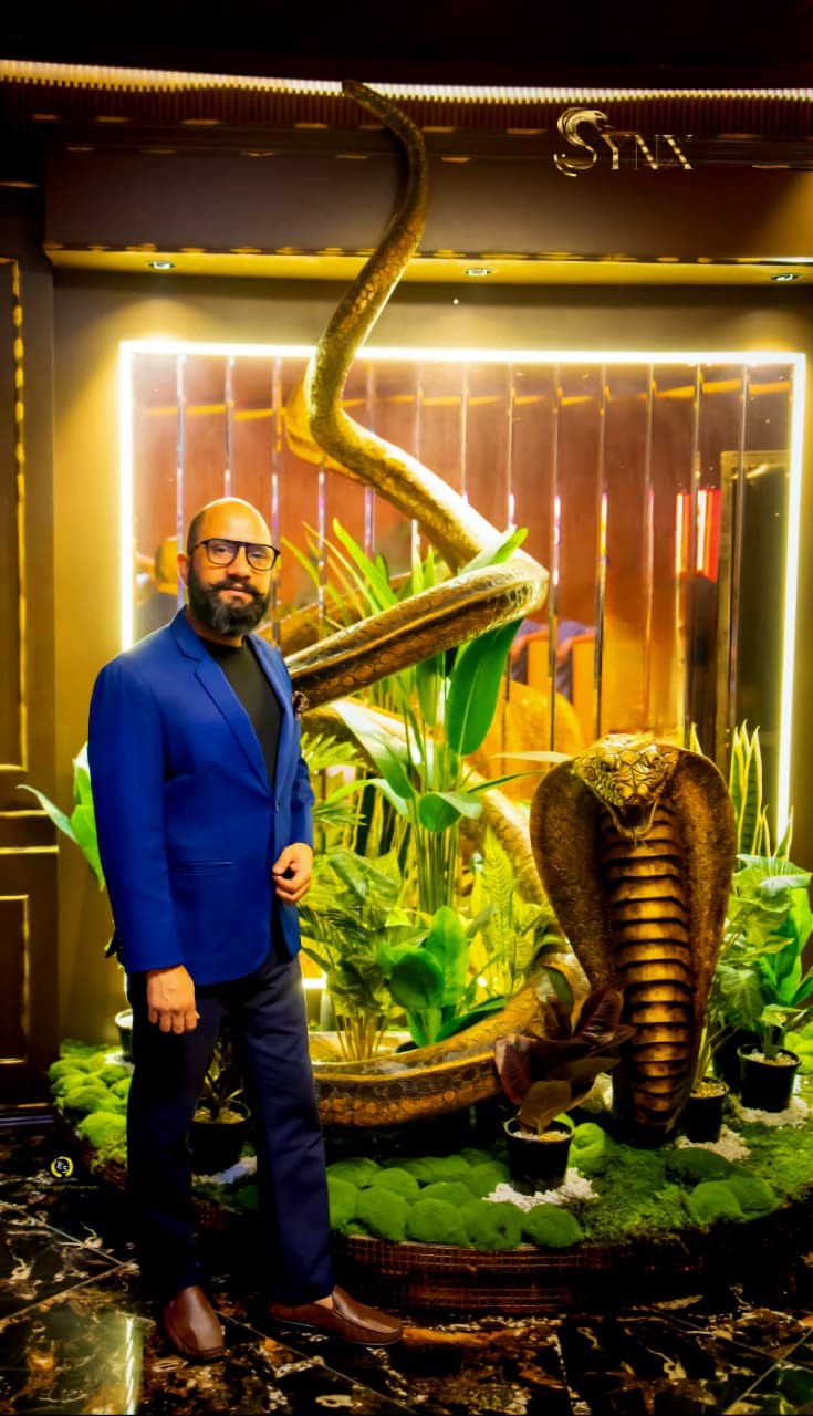 SYNX’s interiors are a visual statement — a play of textures, lighting, and mood that redefines modern lifestyle aesthetics. The design oscillates between the opulent and the enigmatic, with deep tones, illuminated installations, and sculptural accents that evoke the serpent’s form and fluidity.