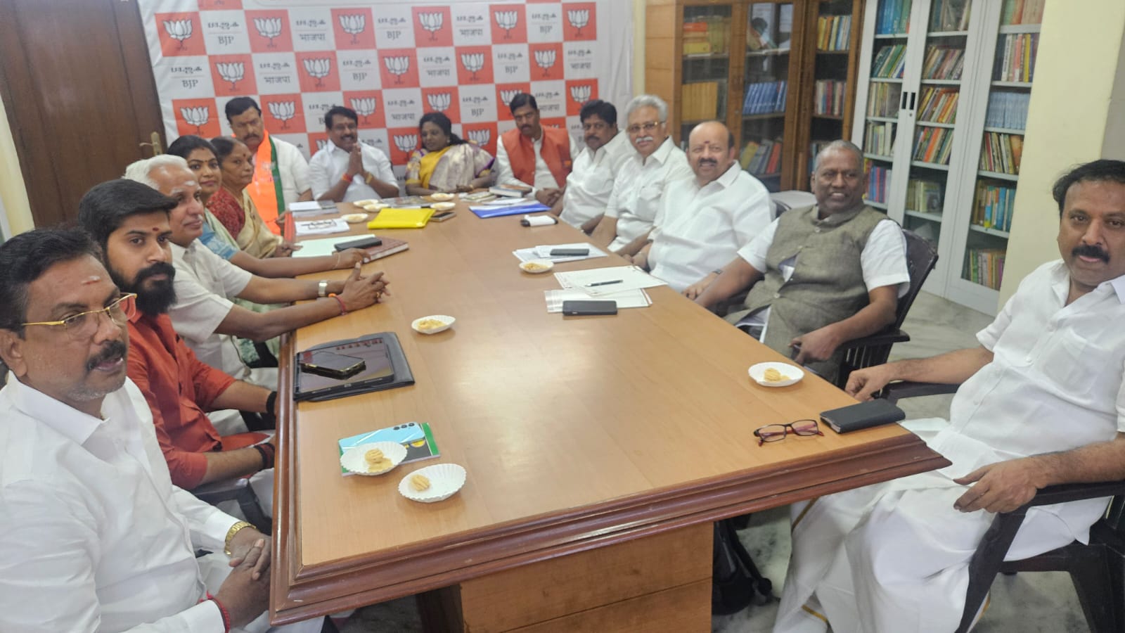 The meeting held at the party’s state headquarters, ‘Kamalayam’ was chaired by the Tamil Nadu BJP State President Nainar Nagendran.