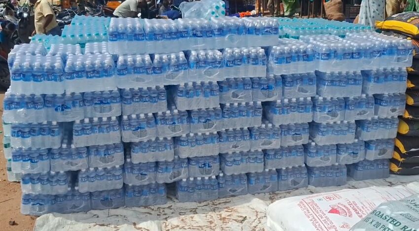 The donation included 18 tonnes of vegetables, 100 sacks of rice, essential grocery items required for large-scale cooking, and 7,500 bottles of drinking water.