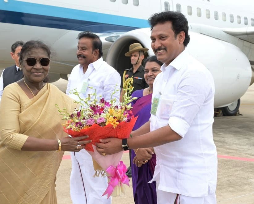 She was warmly received at the airport by Tamil Nadu Governor RN Ravi, Ministers KN Nehru, Anbil Mahesh Poyyamozhi, and senior government officials.