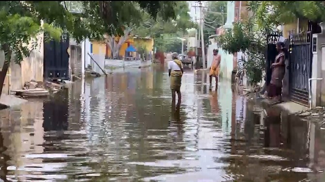 A few pockets in KV Samy Nagar experienced waterlogging, with water entering some houses, almost bringing the daily life of residents to a halt. While some people managed to move around on foot or in their vehicles, many tried to look for alternate routes to go around.