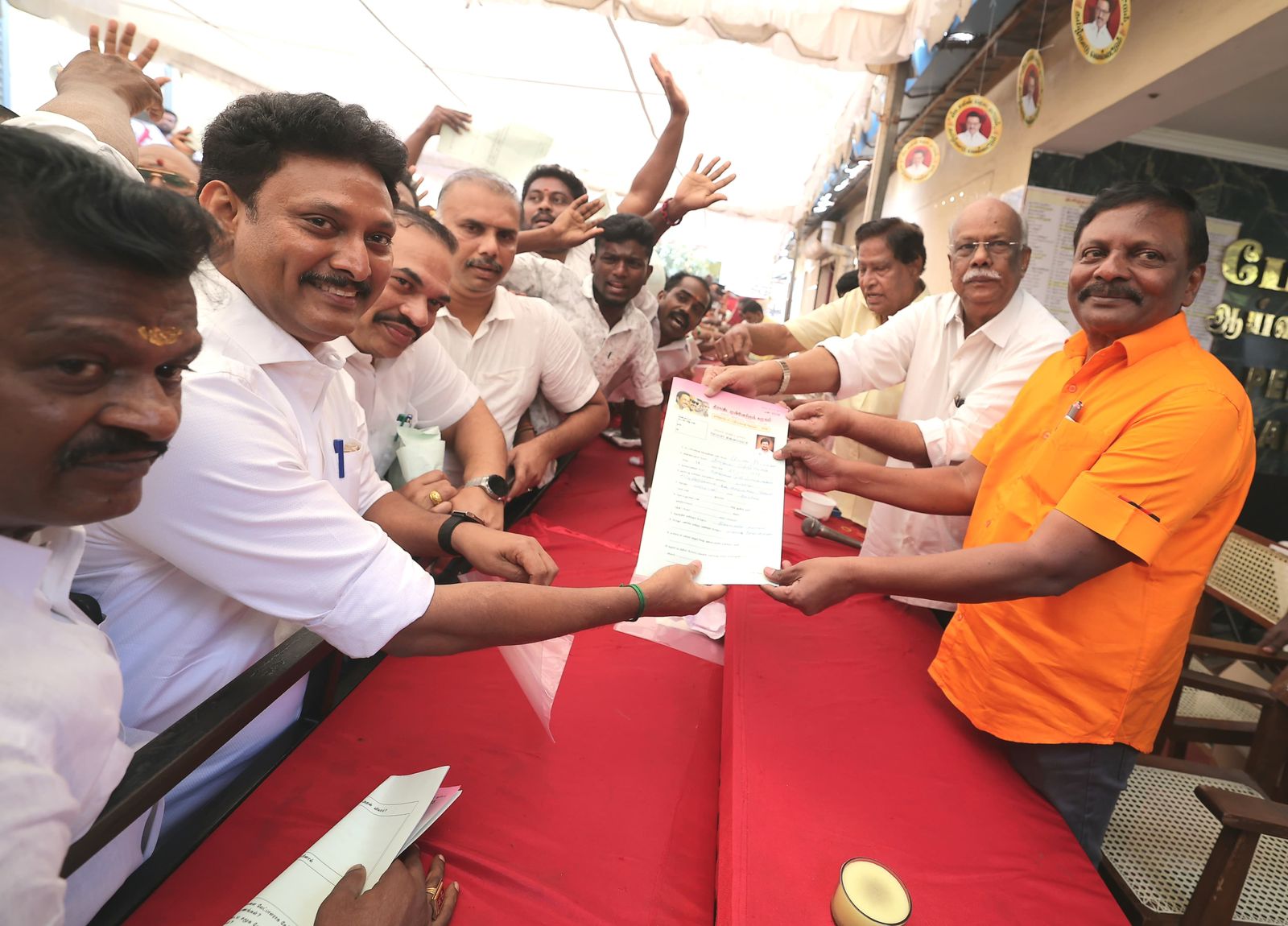 On the same occasion, Tamil Nadu School Education Minister and Tirchy South District DMK Secretary Anbil Mahesh Poyyamozhi also submitted his application seeking to contest from the Thiruverumbur Assembly constituency in Tiruchi district.