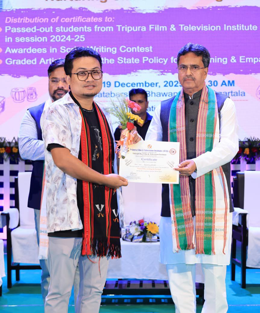 Through this programme, certificates were awarded to students who passed the 2024-25 academic year of the Tripura Film and Television Institute, as well as to artists of various categories who received recognition from the state government.