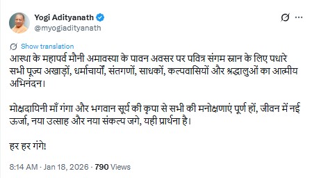 “On the sacred occasion of the great festival of faith, Mauni Amavasya, a heartfelt welcome to all the revered Akharas, Dharmacharyas, saints, sadhaks, kalpavasis, and devotees who have graced the holy Sangam for the sacred bath,” he wrote in the post.