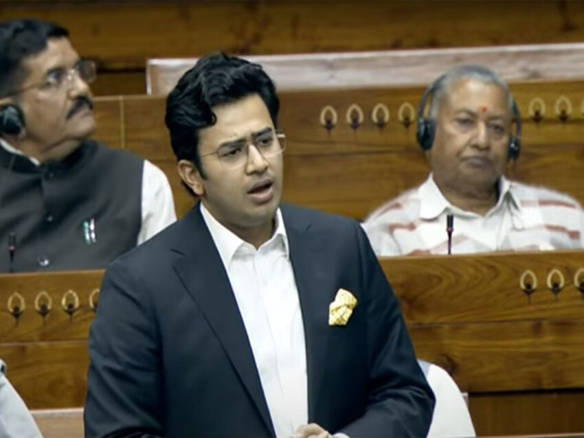 Surya then launched a sharp attack on the previous UPA governments, calling their tenure “a decade of lost opportunity.”