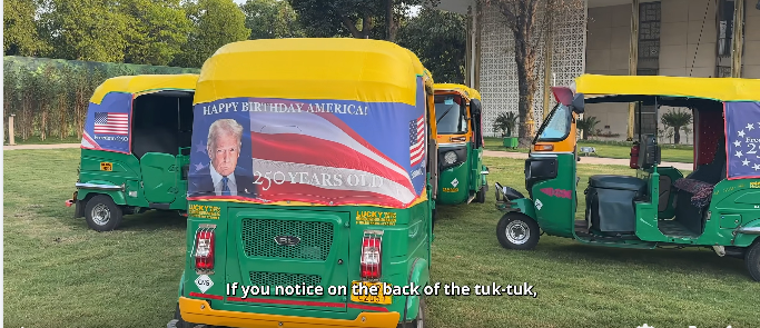 Ambassador Gor kicked off the #Freedom250 celebrations from New Delhi “in the most iconic way, previewing vibrant autos that will be rolled out across the city, proudly featuring President Trump and iconic American images,” the post said