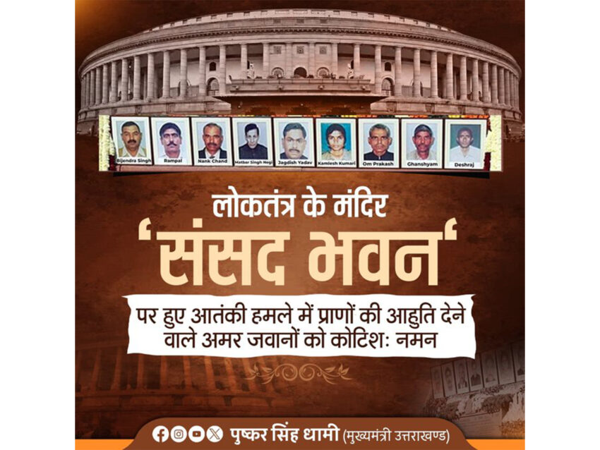 In a post shared on the social media platform X, CM Dhami recalled the bravery of the jawans who neutralised the terrorists and protected the country’s most important democratic institution, emphasising that their valour ensured the safety of Parliament and upheld the sovereignty and integrity of the nation at a critical moment.
