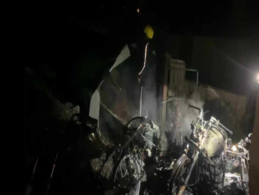 Residents immediately informed the fire department after noticing the incident. However, before fire tenders could reach the spot, the warehouse, along with three scooters and three motorcycles parked along the roadside, had already been reduced to ashes.