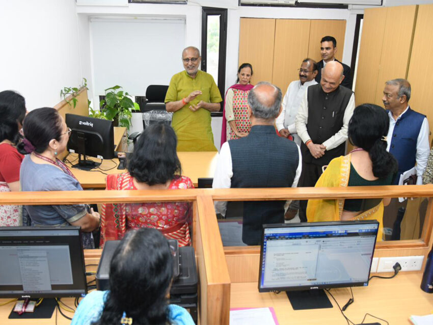 “Hon’ble Vice-President and Chairman, Rajya Sabha, Shri C. P. Radhakrishnan visited various sections of the Rajya Sabha Secretariat today, including the Table Office, Legislative Section, Question Branch, Members’ Salaries and Allowances Branch, Members’ Amenities Section, Bill Office, Notice Office, Lobby Office, and Reporters’ Branch at Parliament House,” it posted.