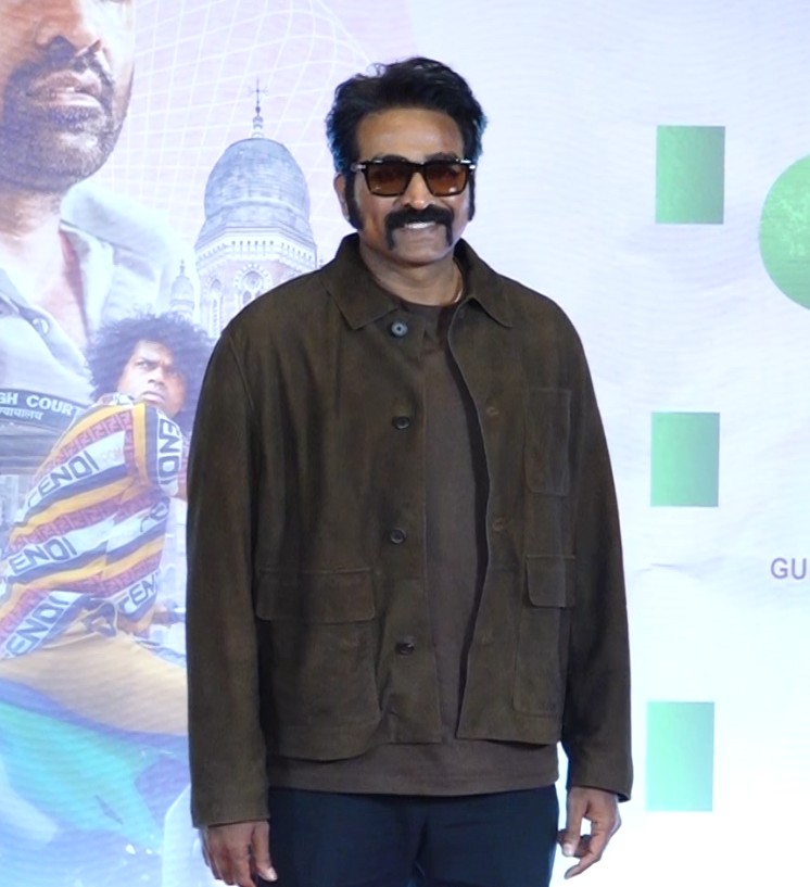 Vijay Sethupathi, who plays the lead role in the film, looked stylish at the event, donning a brown jacket and shirt over blue denim jeans. The actor’s moustache and sunglasses served as the highlight of his look.