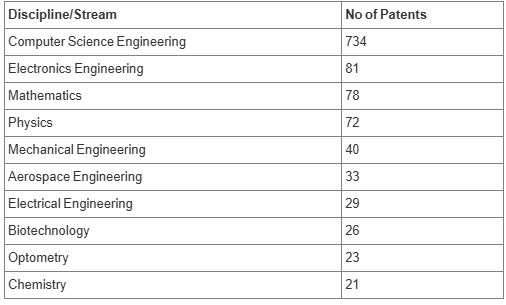 During January to December 2025, Chandigarh University students filed patents across diverse domains including Computer Science Engineering 734, Electronics Engineering 81, Mathematics 78, Physics 72, Mechanical Engineering 40, Aerospace Engineering 33, Electrical Engineering 29, Biotechnology 26, Optometry 23 and Chemistry 21.