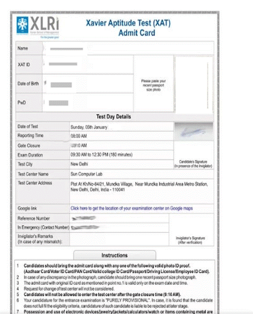 XAT Admit Card Sample